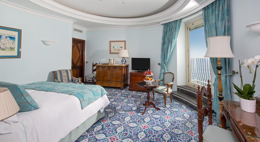 Grand suite balcony sea view: балкон, гостиная, спальня с двуспальной или двумя отдельными кроватями, 2 ванные комнаты (одна – с джакузи, вторая – с душем). Дополнительно: халаты, тапочки. Расположены на верхних этажах башни. Прямой вид на море и замок.