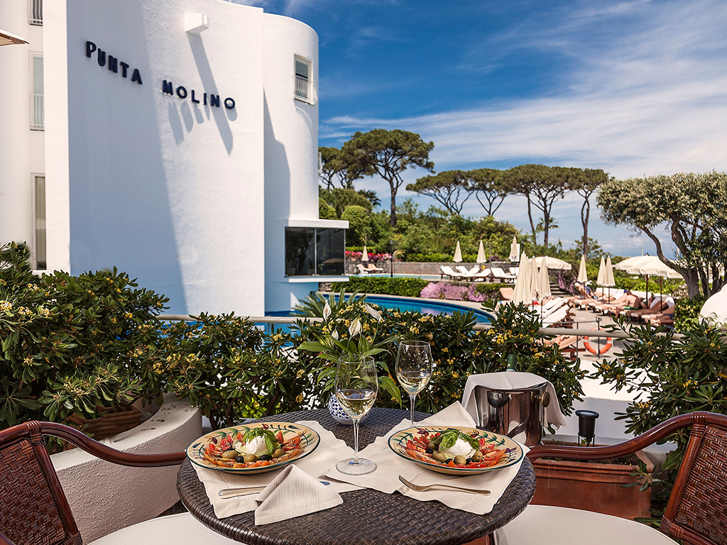 Отель Punta Molino располагает большой террасой, выходящей на море, исторически известной как <b><span style="color: #7b3000;">"O’Rangio Fellone",</span></b> где можно организовать эксклюзивные мероприятия и тематические вечера. <b><span style="color: #7b3000;">Романтическое место </span></b>подходит для мероприятий, которые сделают особым ваш праздничный день