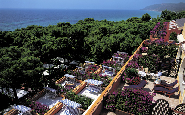 Номер на четвертом этаже, расположенный на двух уровнях. Гостиная, комнаты twin или double, ванная комната с ванной или душем. Из спальни можно спуститься в небольшую прихожую, которая переходит в просторную террасу с видом на море и сосновую рощу. По запросу может быть предоставлена дополнительная кровать. В некоторых случаях возможно забронировать соседнюю комнату.