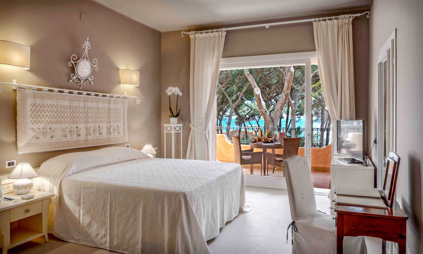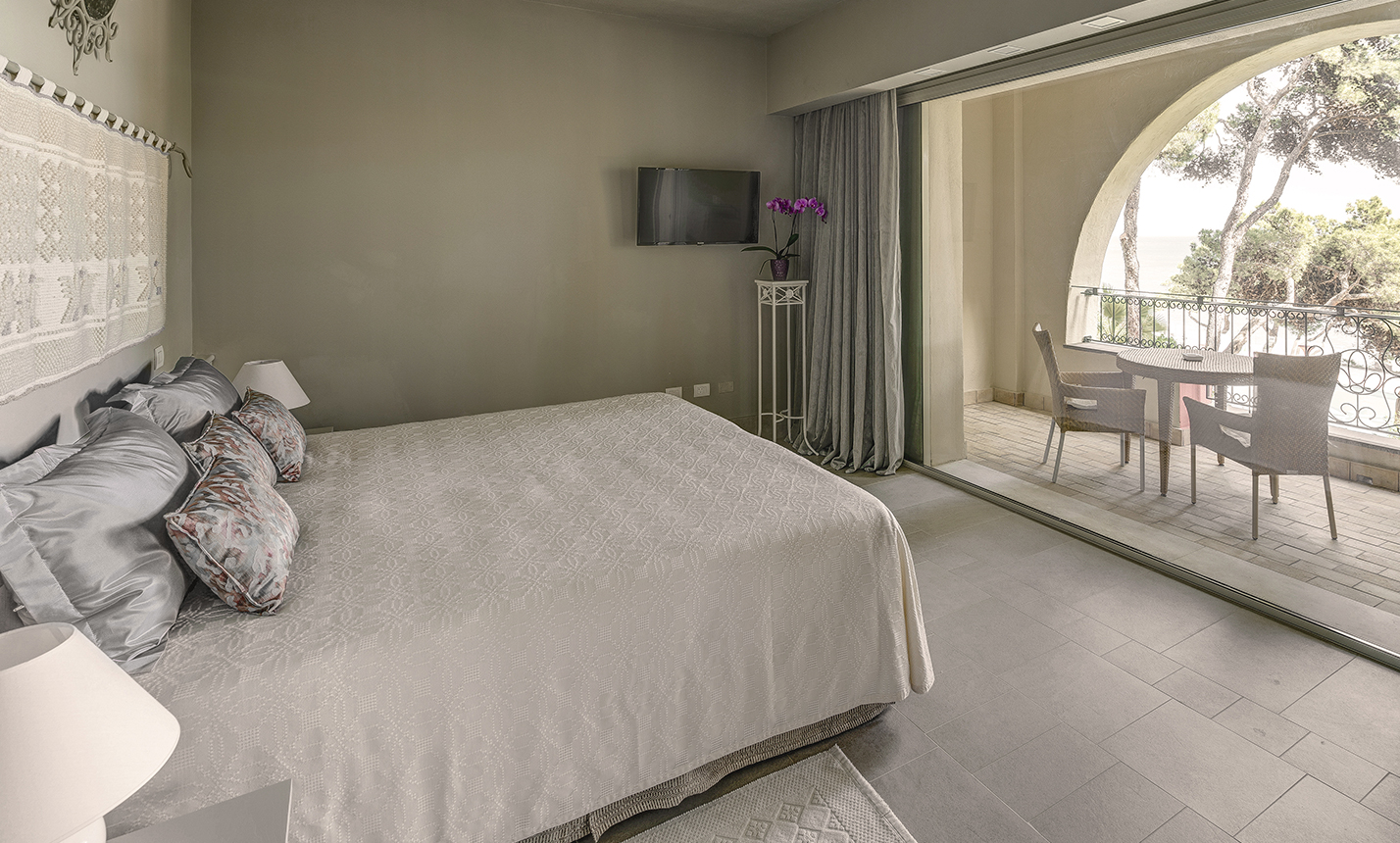 Просторные и удобные номера площадью около 30 кв. м и террасой 27 кв. м. Комнаты double или с двумя кроватями queen size. Ванная комната с ванной или душем, просторная терраса, с которой открывается вид на море. В некоторых ванных установлены джакузи и души с цветотерапией. По запросу может быть предоставлена дополнительная кровать. В некоторых случаях возможно забронировать соседнюю комнату.