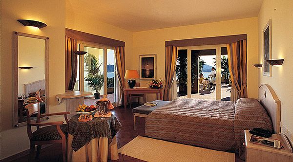Холлы отеля оформлены в современном стиле, с мраморными полами, изящными колоннами и дизайнерскими светильниками. Уютные мягкие кресла и диваны, обитые яркими драпировками, напоминают о традициях Сардинии. Из окон номеров открывается вид на море или парк.