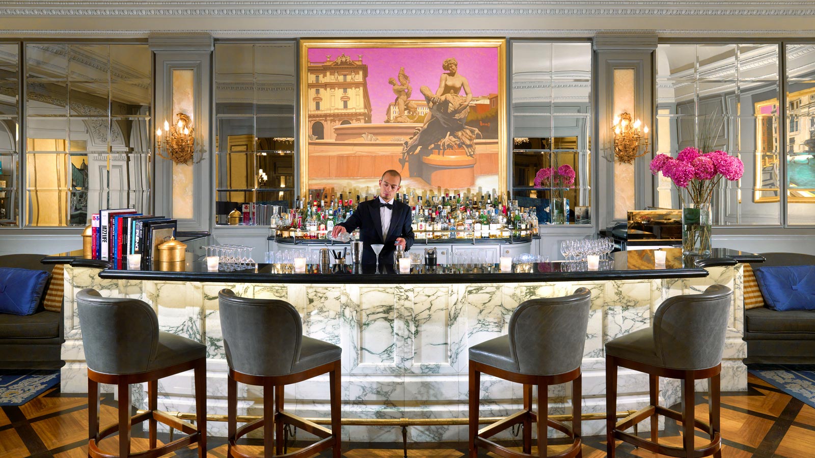 <b><span style="color: #a1410d;">Бар Le Grand</span></b>, расположенный в лобби отеля реконструированный бар Le Grand был назван журналом Newsweek лучшим баром в Риме. Входящий в число самых известных баров в Риме, бар Le Grand — это замечательное место, где можно насладиться фирменным коктейлем «Кровавая Мэри» или побаловать себя шампанским. Бар открыт в течение дня и вечера. Это идеальное место, чтобы расслабиться и познакомиться поближе с историей Рима. Ежедневно проводится послеобеденное чаепитие при эксклюзивном партнерстве с Dammann Frères.<br>