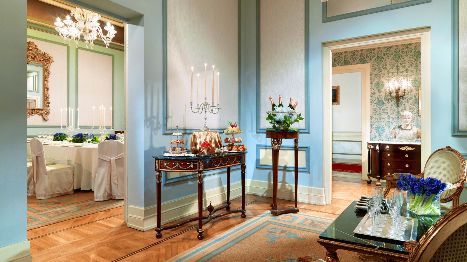 <span style="color: #a1410d;"><i>Специально для этого отеля была задумана и разработана экстраординарная коллекция свитов</i></span>, призванная удовлетворить различные предпочтения гостей: эклектические детали и современный итальянский дизайн Designer Suite; изысканная элегантность, вдохновленная уникальным интерьером и возвышенной чувственностью Bottega Veneta Suite ; лучшим образцом истинного итальянского стиля является недавно отреставрированный Couture Suite ; вечная элегантность и величественный декор, представленный оригинальными антикварными изделиями в Royal Suite.