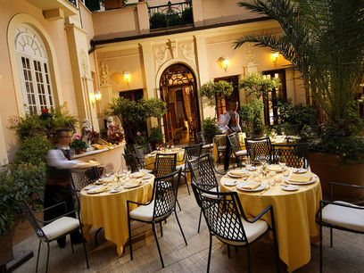 La Piazzetta De la Ville — элегантный ресторан с разнообразным и изысканным меню итальянской и международной кухонь. В летнее время столики накрываются в саду внутреннего дворика отеля.