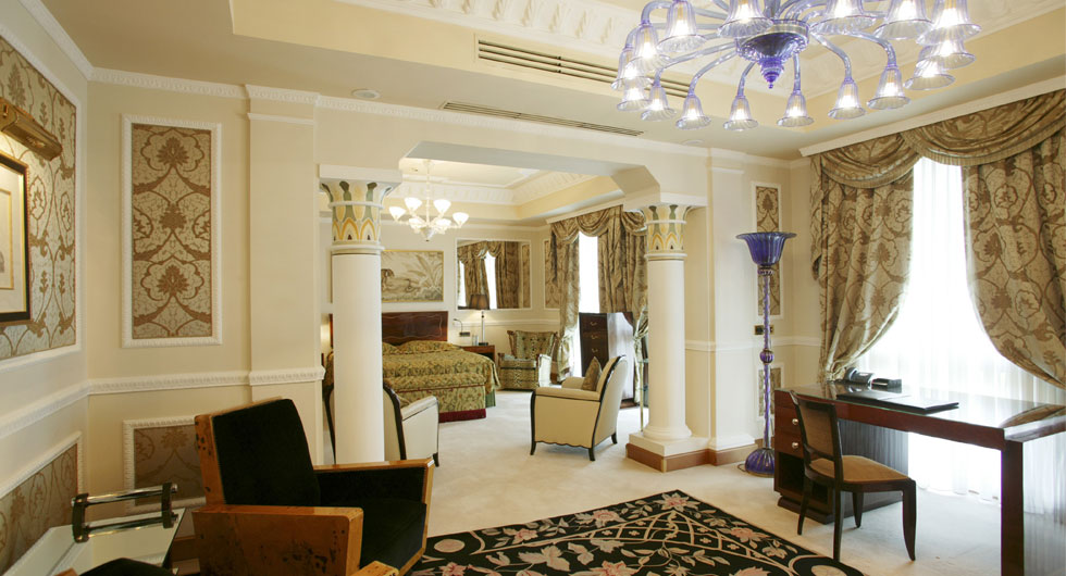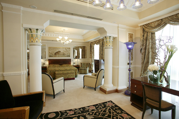 Suite Déco (60 кв.м.) - два изысканных люкса Art Déco, расположенных на четвертом и пятом этаже отеля Carlton Hotel Baglioni, выходят своими большими окнами на знаменитую улицу Via Senato в центре Милана. В обстановке номеров соединяются различные стили и культуры для создания уникальной атмосферы, в которой стиль Déco сочетается с экзотическими деталями. Обстановка обогащена подлинной мебелью и предметами убранства 30-ых годов, светильниками из муранского стекла, изготовленными вручную, облицовкой и полом из ценных сортов мрамора, что делает этот люкс драгоценностью изысканного дизайна. В просторной гостиной имеется арка, поддерживаемая колоннами с искусно украшенными капителями. Спальня обставлена ценной мебелью, изготовленной вручную, уникальными предметами обстановки, национальными коврами и картинами теплых тонов. Гостиная с обеденным столом и письменным столом, освещенным большим витражом, превосходна для отдыха, но и, в равной мере, удовлетворяет необходимым потребностям бизнес-клиентов. Включенные услуги: бесплатная глажка (2 предмета), VIP обслуживание, упаковка и распаковка багажа, бесплатный проводной или беспроводной доступ к скоростному Интернету, круглосуточные услуги консьержа на нескольких языках, включены местные телефонные звонки, док-станция для IPod, туалетные принадлежности, бесплатный просмотр фильмов и телевизионных программ (по просьбе).