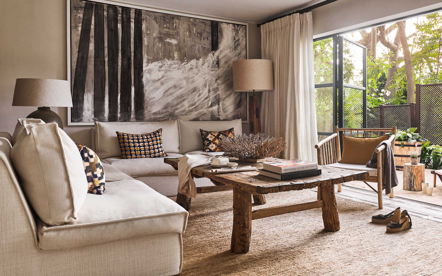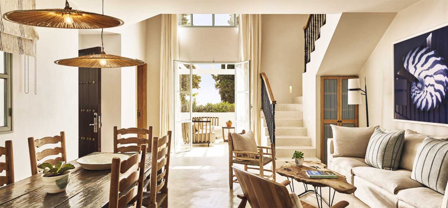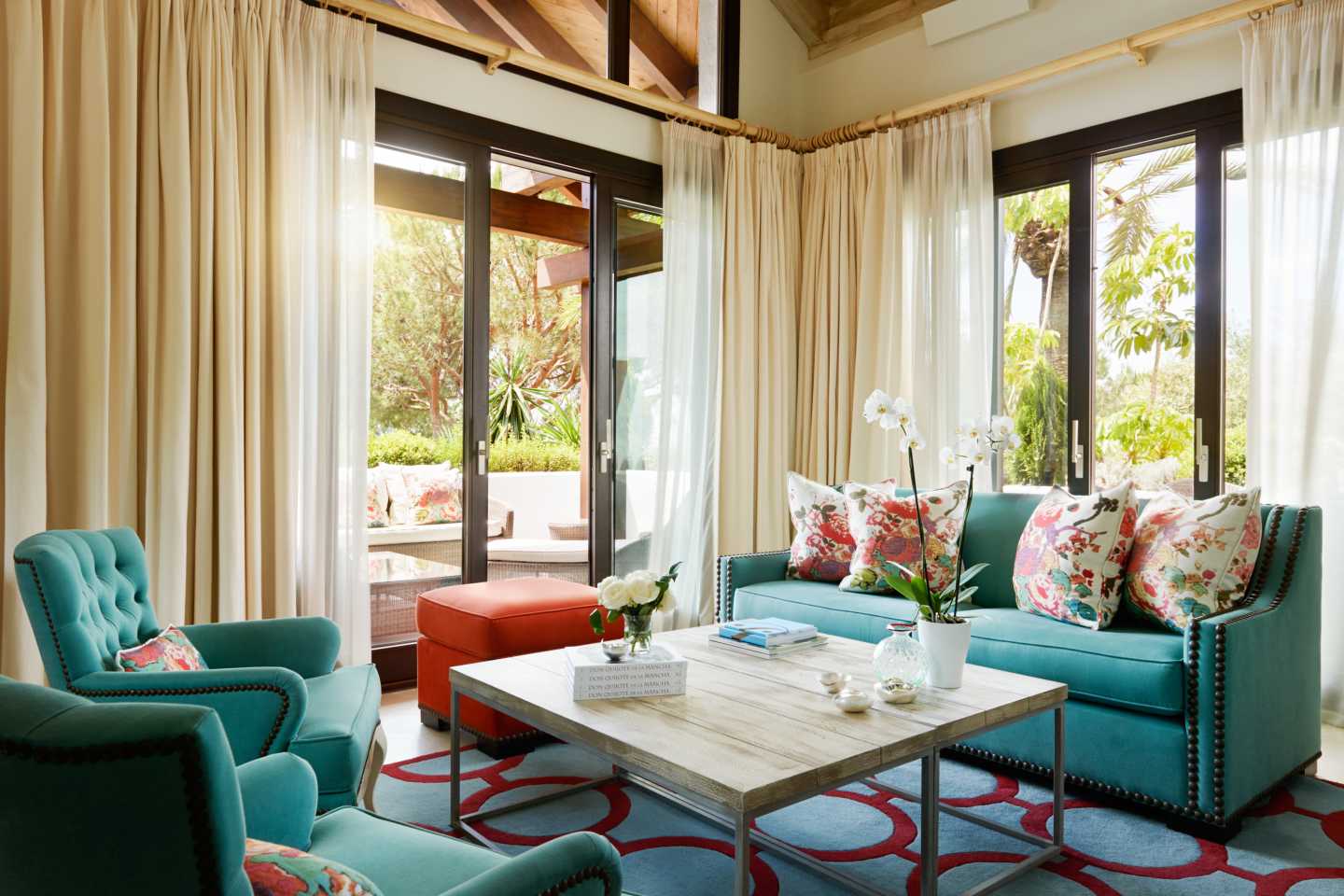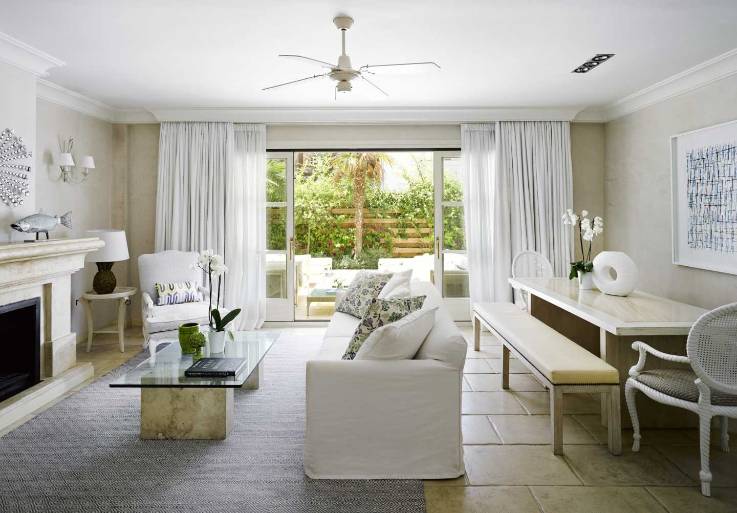 Deluxe Garden Suite 70м2 - номера в средиземноморском стиле. Просторная гостиная с диваном, кофейным столиком, круглым обеденным столом на 4 персон. Ванна отделана мрамором. Терраса с видом на сад.