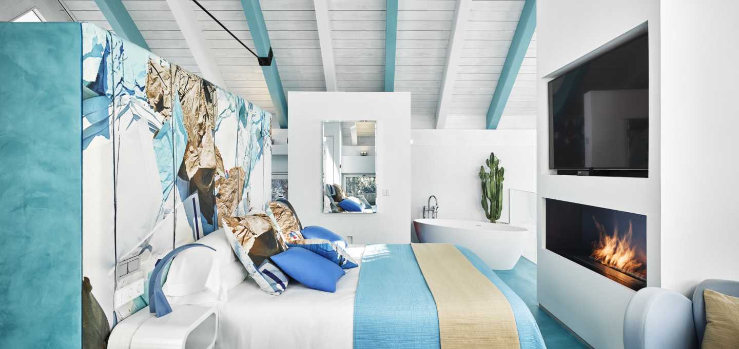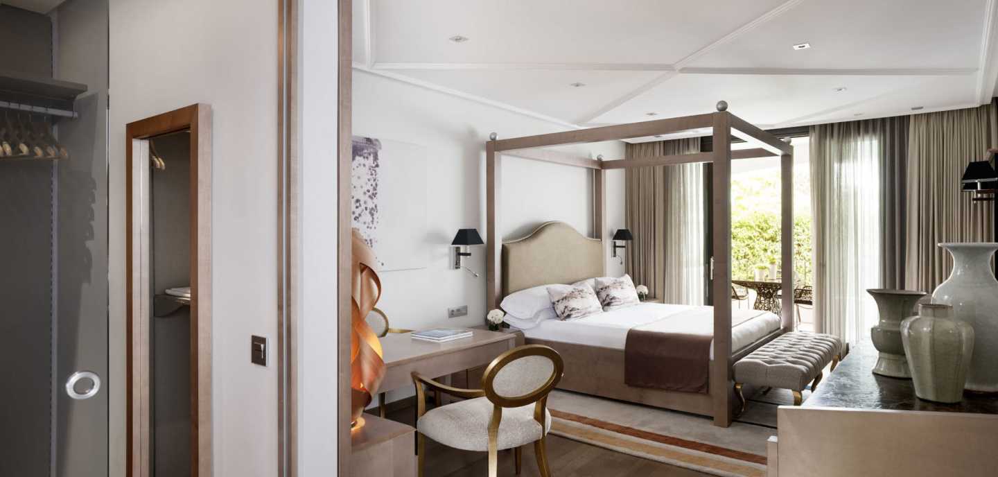 Mediterranean Suite 90м2- современный и очень яркий номер с большими окнами и частичным видом на море с террасы. Здесь есть уютная гостиная, спальня, терраса, мраморная ванна.
