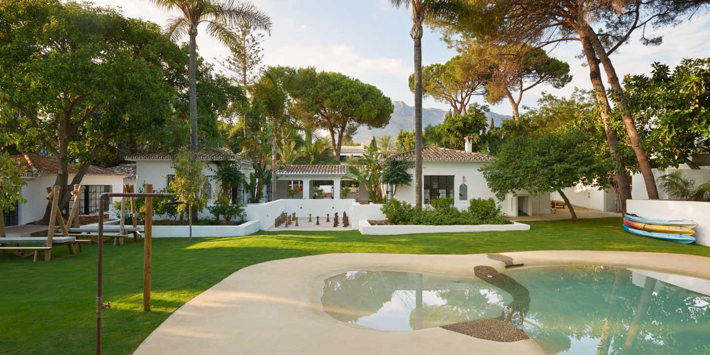 El Cortijo 275м2 - двухэтажная вилла в центре сада Есть собственный сад, гостиная с кухонным уголком, терраса, бассейн, 4 спальни, 4 ванны.