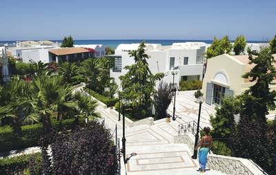 Отель расположен в 5 км от центра Херсониссоса, на берегу моря в окружении ухоженных садов. В отеле: ресторан, который предлагает большой выбор греческих и европейских блюд, закусочный бар и 3 других бара, где подаются напитки, кофе, разнообразные коктейли. На территории отеля 3 плавательных бассейна, 2 теннисных корта, настольный теннис, тренажерный зал, сауна, массаж, центр водных видов спорта, школа подводного плавания, детский клуб и игровая площадка. Пляж песчаный.