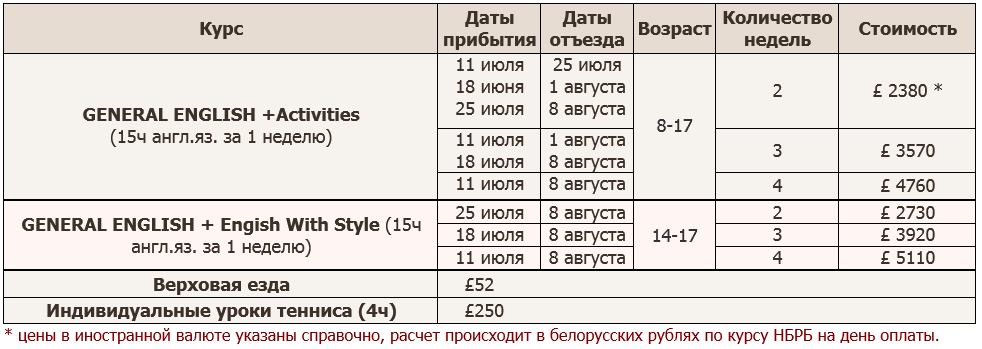 Программы: General English , General English + English with Style