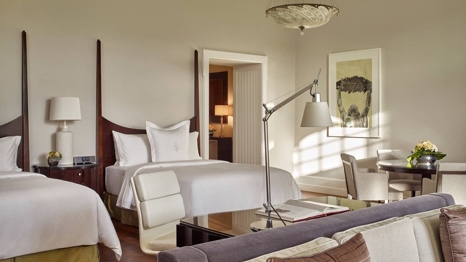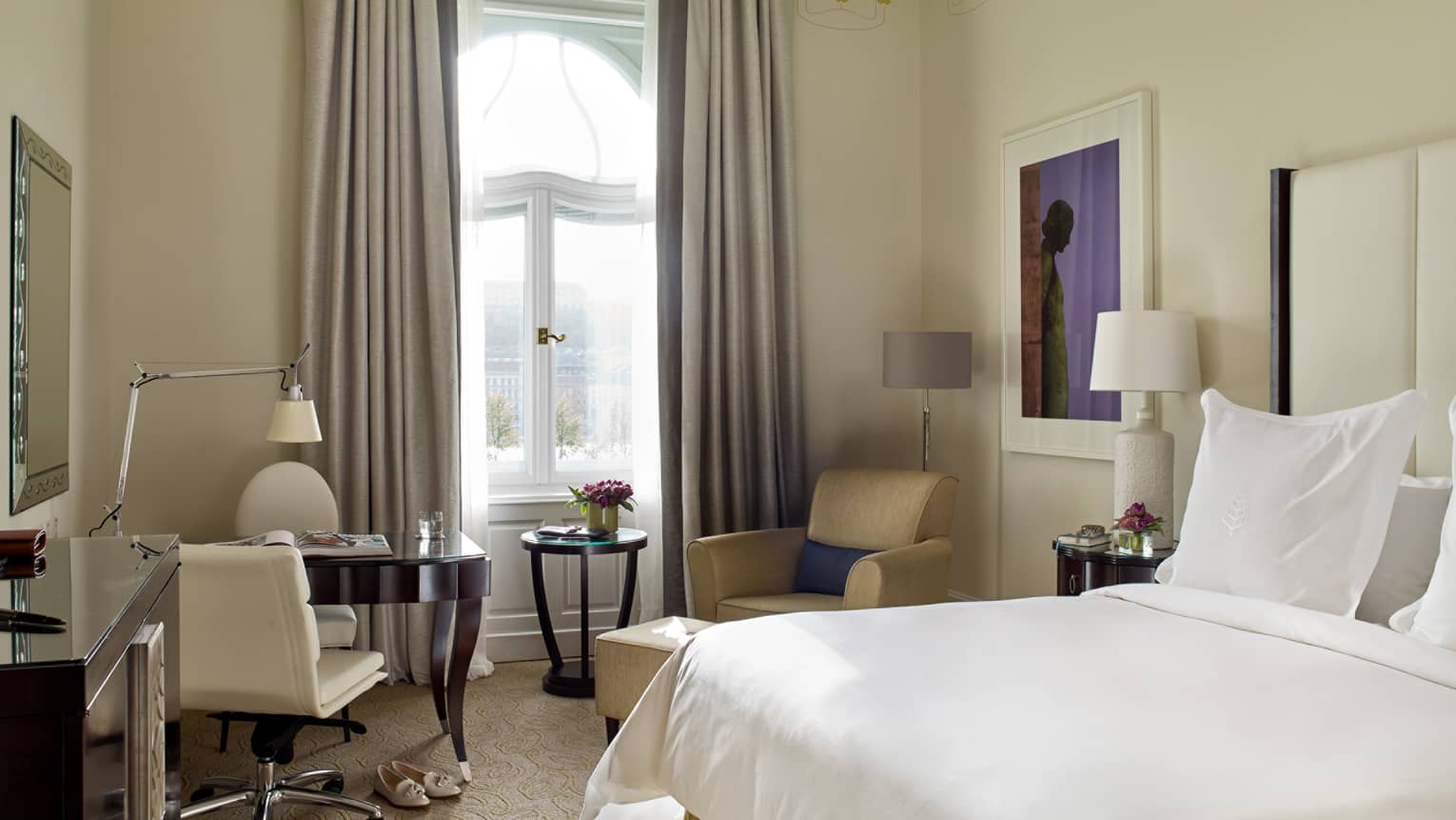 Величественный особняк Four Seasons Hotel Gresham Palace Budapest Венгрия, расположенный в историческом центре Будапешта, отражает монументальность и великолепие стиля модерн. Дворец украшают причудливые башенки со шпилями, стройные колонны, эркеры и арочные окна, а внутреннее убранство отеля поражает утонченной роскошью: огромный стеклянный атриум, мраморные полы, цветные витражи, ажурное литье и пышные декоративные растения. Комфортабельные номера Four Seasons Hotel Gresham Palace Budapest Венгрия отличаются изысканностью интерьеров, гармонично сочетающих самый современный комфорт и изящество стиля Арт Деко: сводчатые потолки, лепнина, хрустальные люстры, антикварная мебель и живописные полотна, из окон открываются восхитительные виды на сверкающие воды Дуная, Королевский Дворец, Цепной мост, холмы Буды и живописные ландшафты города.