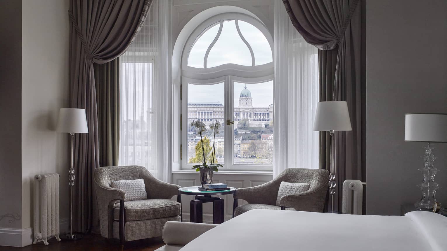 Palace Suite: 85 м2. Расположен на 1 этаже, выходит на Дуная, Королевский Дворец, Цепной мост, холмы Буды и Рыбацкий бастион; оформлен в стиле Арт Деко и состоит из спальни с кроватью king-size, гостиной зоны с диваном, креслами, кофейным столиком, рабочей зоной и обеденной зоной на 4 человека, ванной комнаты с ванной и отдельной душевой кабиной, гостевой туалетной комнаты. Максимальное размещение — 3 взрослых или 2 взрослых+1 ребенок.