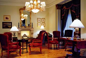 Business Suite: 55 м2. Расположен в угловой части здания, состоит из спальни, гостиной, ванной комнаты с ванной и отдельной душевой кабиной, гостевой туалетной комнаты, в номере имеется CD/DVD player, система Hi-Fi.