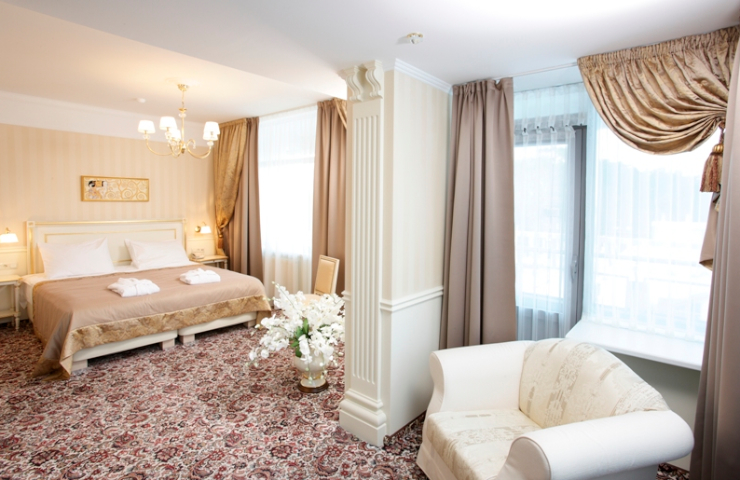 Корпус Standard 4* – окна уютных номеров корпуса выходят на сосновый лес или ухоженный дворик гостиницы. Это задняя часть отеля, занимающая всего два этажа.
