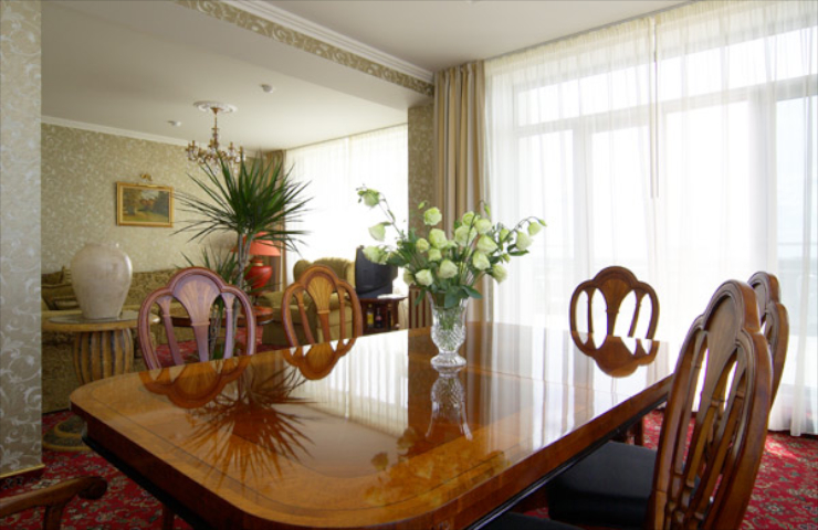 Роскошный Президенский номер находится на последнем этаже главного корпуса отеля Baltic Beach Hotel. По всему периметру номер окружен просторной террасой, где гости могут завтракать, загорать или наслаждаться бокалом вина, и откуда вечером открывается потрясающий вид на закат. Изысканный президентский люкс отеля Baltic Beach Hotel состоит из 3 отдельных спален, гостиной, кухни, сауны и ванной комнаты с видом на море. В номере: 3 спальни с большими двуспальными кроватями (King size), гостиная, кухня, отдельный выход на террасу, 2 ванные комнаты, джакузи, сауна, кухонное оборудование, плита, холодильник, мини-бар, удобный письменный стол с письменными принадлежностями, телевизор и кабельное телевидение, фен, антиаллергенные подушки и одеяла, беспроводной интернет, кондиционер воздуха, сейф, телефон, халат и тапочки, CD- и DVD-проигрыватель по запросу, утюг и гладильная доска по запросу, дополнительная кровать по запросу.