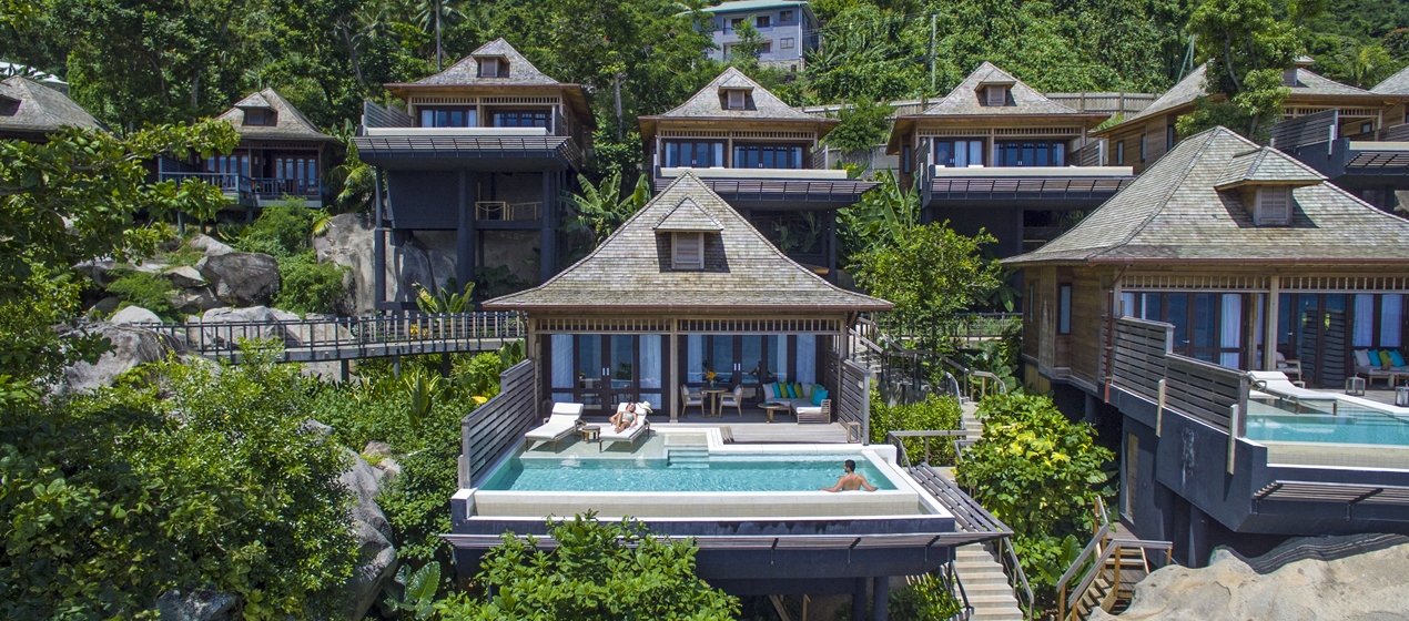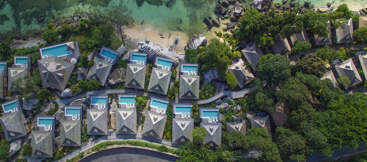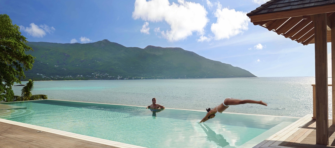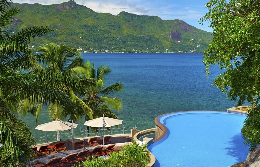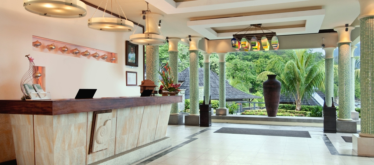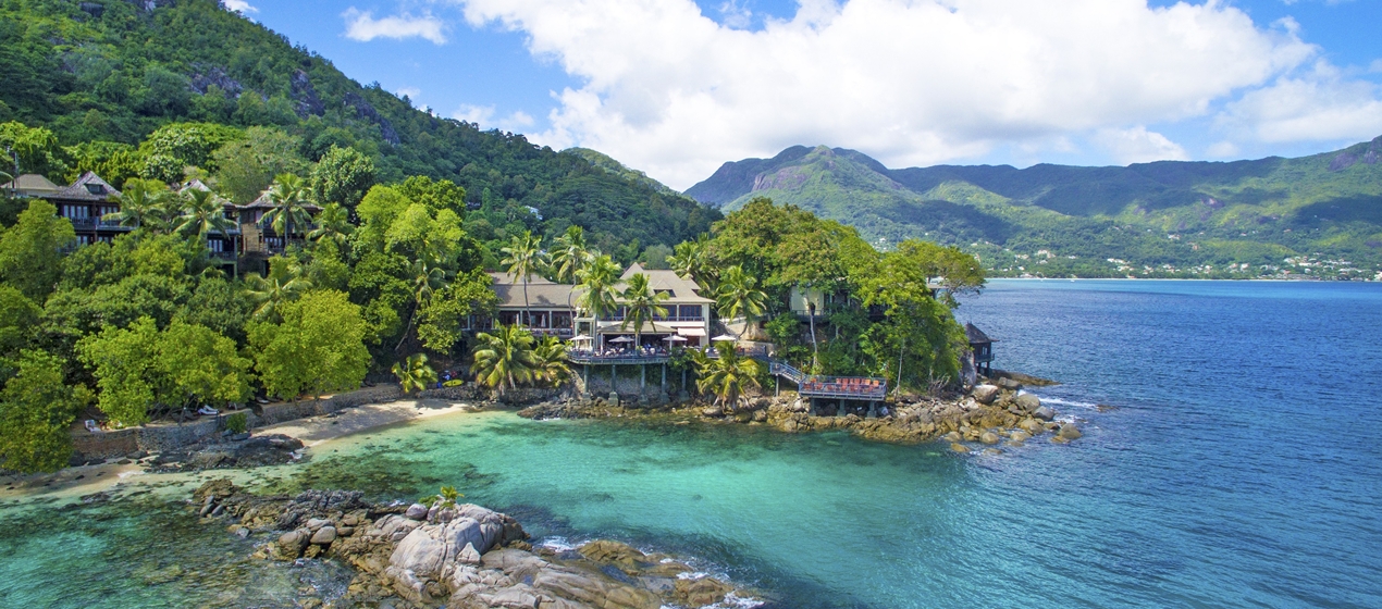 Отель расположен на холмистом северо-западном побережье острова Маэ у пляжа залива Beau Vallon.
