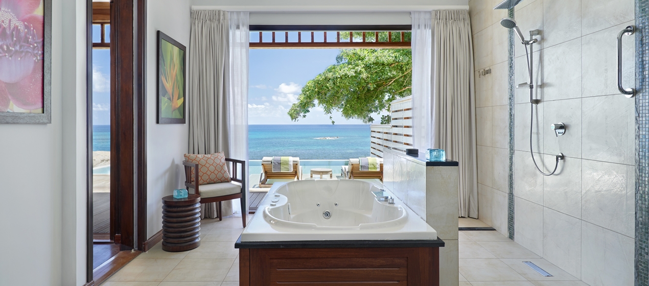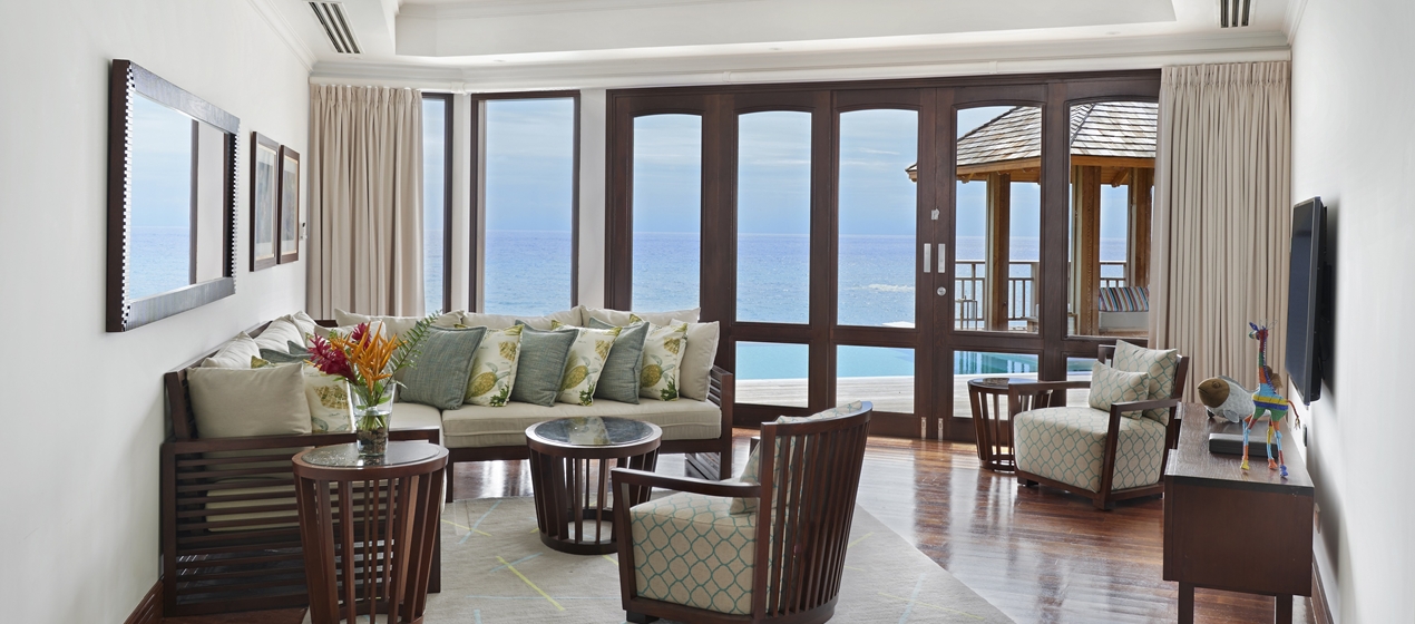 <span style="color: #7b3000;"><b>Ian Fleming Suite</b></span>: 90 м<sup>2</sup>, назван в честь Яна Флеминга, автора романов о Джеймсе Бонде; расположен рядом с пляжем, в Deluxe Oceanfront Villa, построенной на сваях у воды; состоит из спальни с кроватью под пологом, гостиной зоны, ванной комнаты с джакузи, балкона с видом на океан.