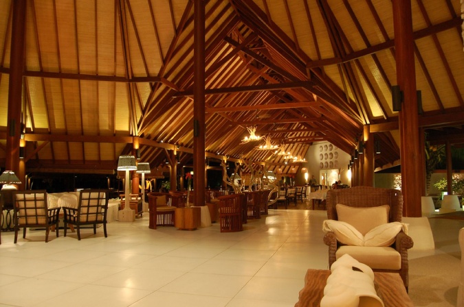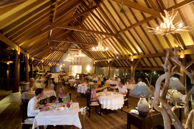 Элегантный <b><span style="color: #7b3000;">ресторан</span></b> отеля с открытой террасой предлагает разнообразные блюда креольской и европейской кухонь, приготовленные из свежайших морепродуктов и продуктов, поставляемых с собственной фермы острова. Это и пышные буфеты завтраков с тропическими фруктами, свежевыжатыми соками и домашней выпечкой, и обеды с буфетами салатов, десертов и блюдами-гриль из мяса и океанской рыбы, и изысканные ужины с меню из пяти блюд. В зависимости от погоды, столики могут сервировать также на берегу или вокруг бассейна.