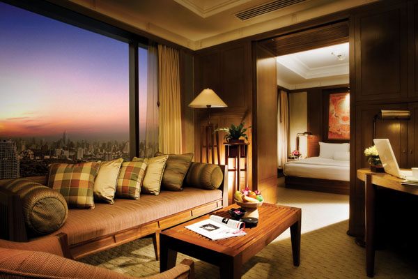 </b><b><span style="color: maroon;">Deluxe View Suite (48 кв.м)</span></b> — расположен рядом со СПА Центром, состоит из спальни, гостиной с рабочей зоной, ванной комнаты, имеет панорамный вид на город и реку Chao Phraya. <br>
