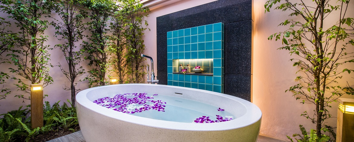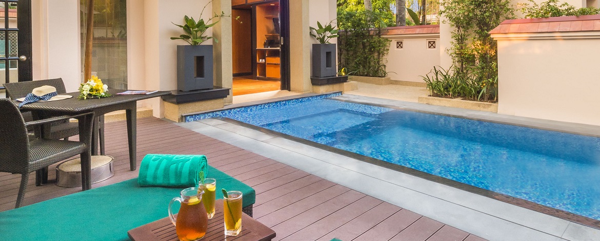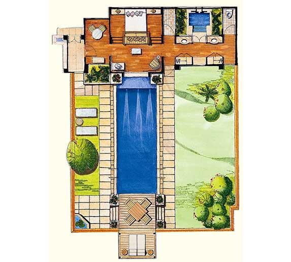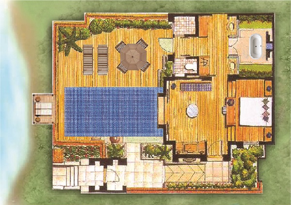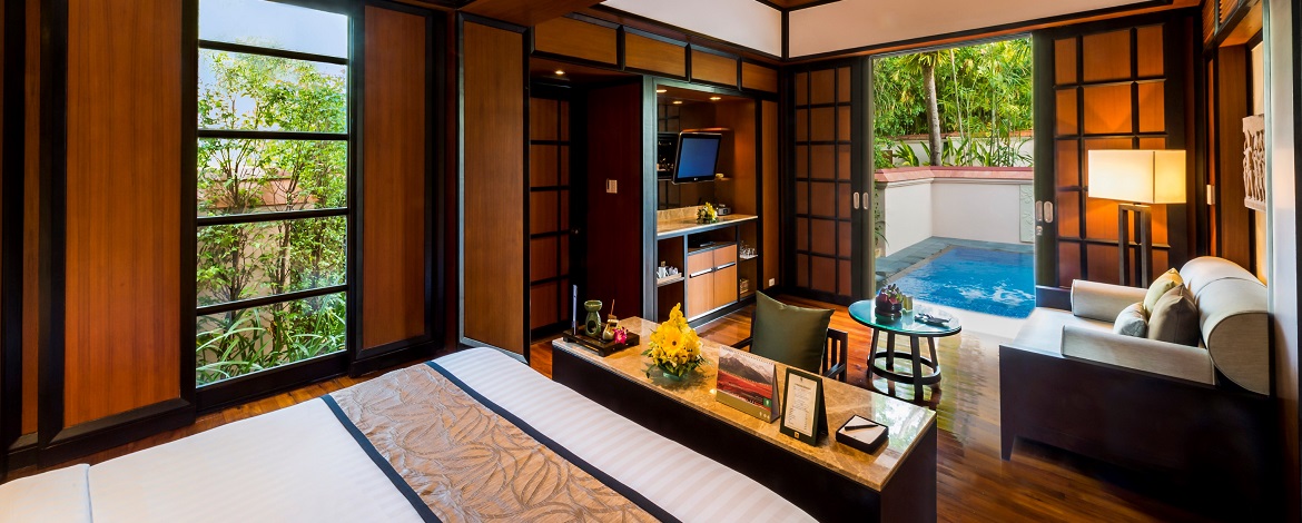 Plunge Pool Villa 170 м - расположена в саду, состоит из спальни, гостиной зоны, гардеробной, ванной комнаты, террасы с зоной отдыха и бассейном (2,5 м х 3,5 м).