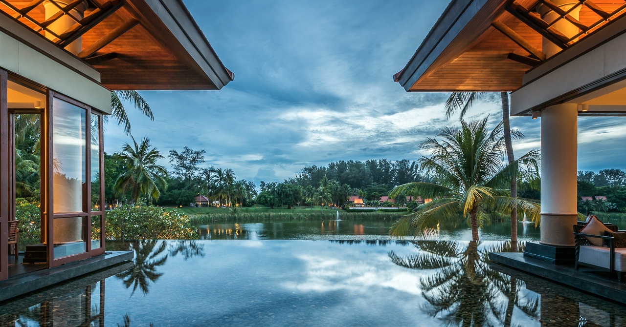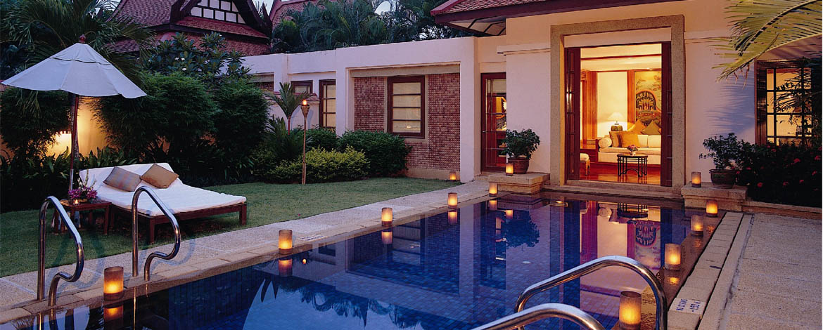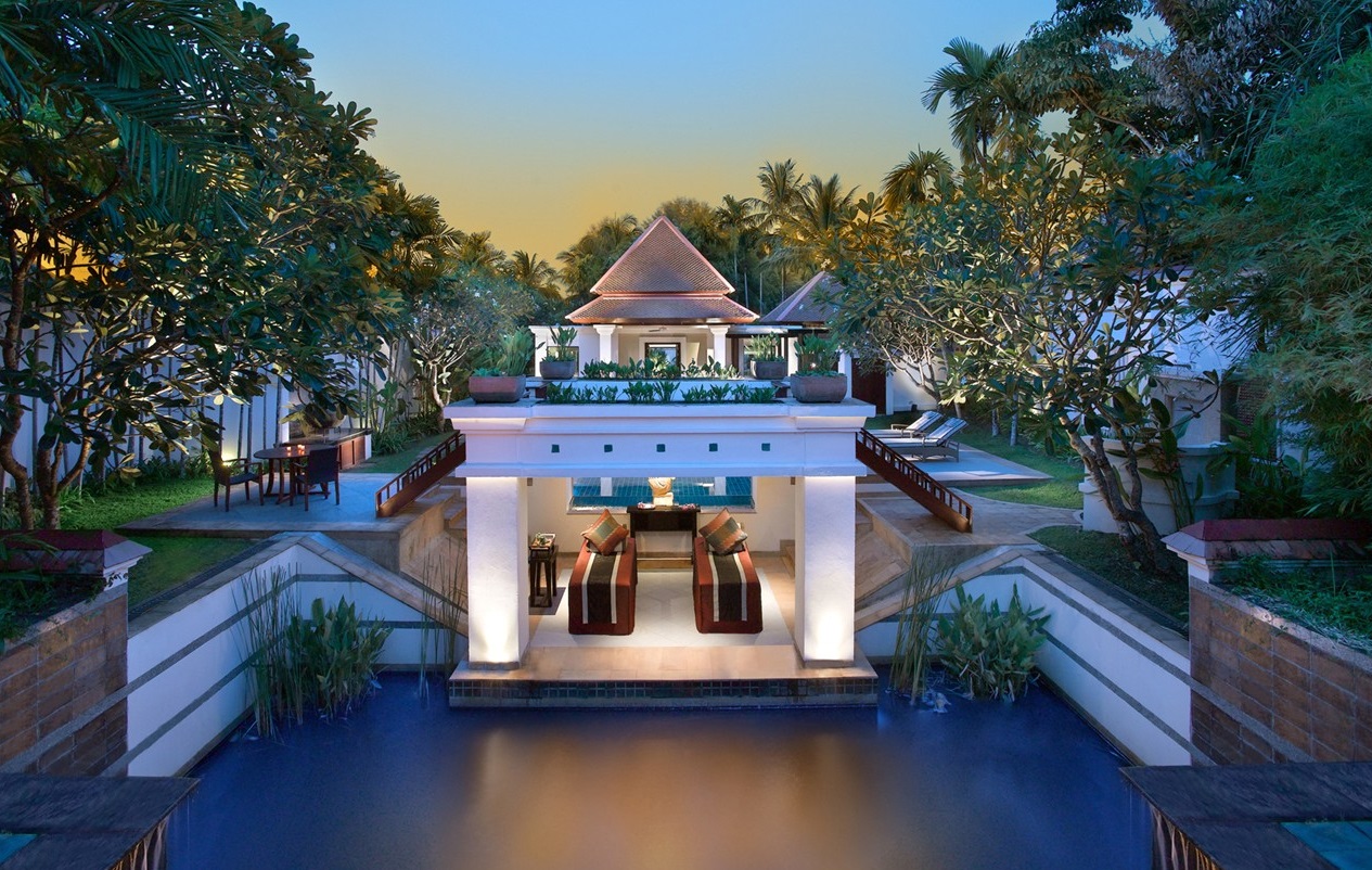 На берегу лазурного залива Bang Tao Bay, у просторных белоснежных пляжей, среди густой зелени садов и раскидистых кокосовых пальм, расположились комфортабельные виллы Banyan Tree Phuket – одного из пяти первоклассных отелей, входящих в курортный комплекс Laguna Phuket. В просторных номерах – элегантные интерьеры в современном тайском стиле, с отделкой из натурального дерева и тканей, мягким освещением, удобной мебелью, искусными панно и изысканными украшениями работы местных мастеров, с уютных террас, окруженных пышной зеленью, открывается изумительный вид на сверкающую гладь лагуны и тропические сады. Оздоровительный/СПА Центр Banyan Tree Spas – настоящий оазис красоты, релаксации и здоровья, предлагающий широкий выбор различных видов массажа, ванн, обертываний, пилингов и других СПА процедур и программ, основанных на древних традициях Востока и современных западных методиках, с использованием натуральных продуктов.
