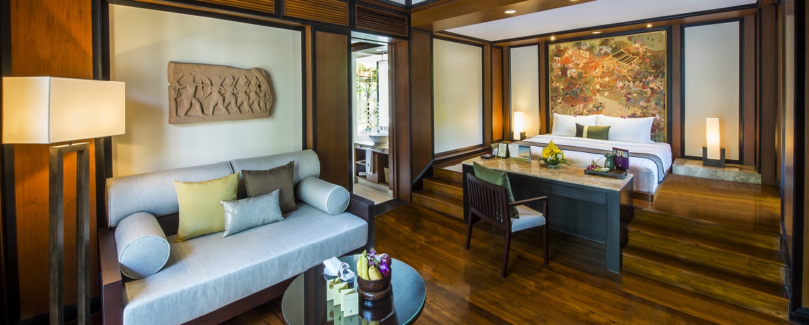 В отеле 121 комфортабельная вилла различных категорий. В номерах – элегантные интерьеры в современном тайском стиле, с отделкой из натурального дерева и тканей, мягким освещением, удобной мебелью, искусными панно и изысканными украшениями работы местных мастеров, с уютных террас, окруженных пышной зеленью, открывается изумительный вид на сверкающую гладь лагуны и тропические сады.