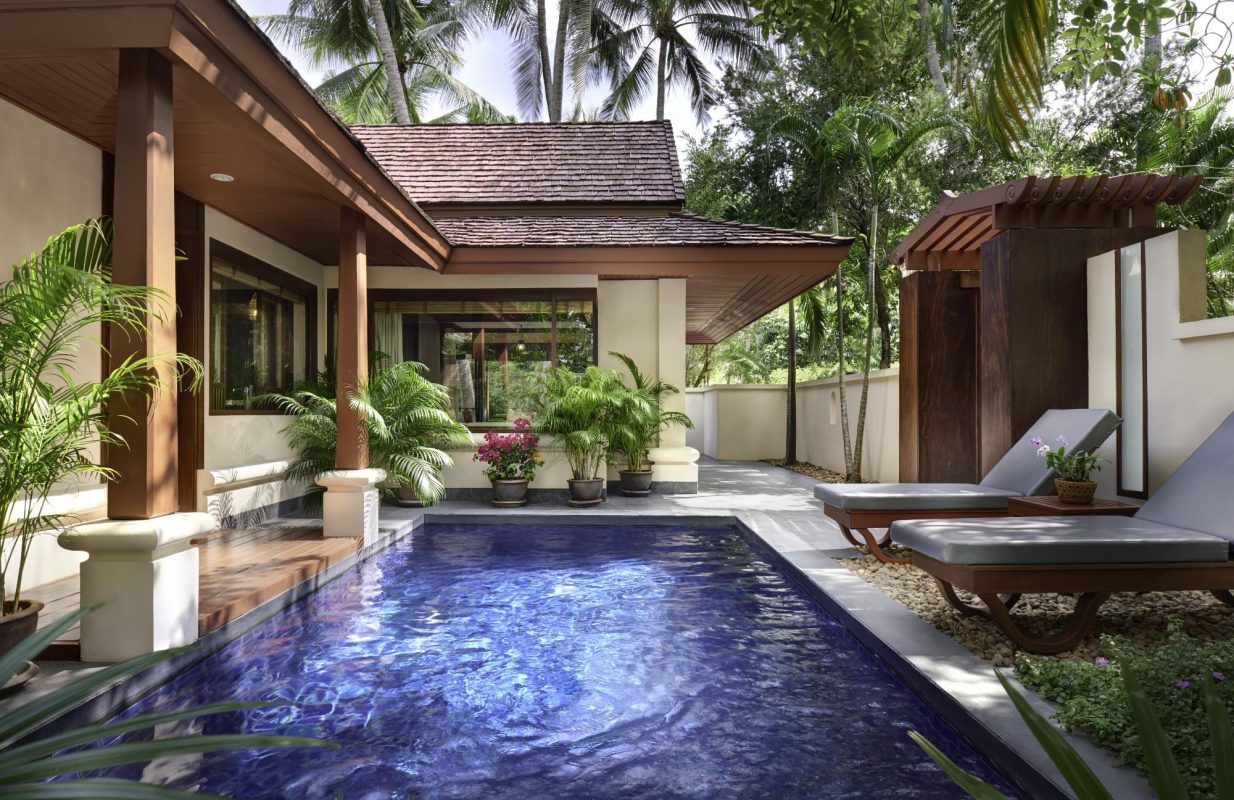 2-bedroom grand deluxe beachfront villa with private pool (195 кв. м): частный сад с открытым персональным бассейном и обеденной зоной на открытом воздухе, гостиная с обеденной зоной, 2 спальни, 2 гардеробные, 2 ванные комнаты (каждая – с ванной и душем с функцией «тропический дождь»). Каждая спальня и гостиная расположены в отдельной вилле. Расположены рядом с пляжем. Услуги персонального камердинера.