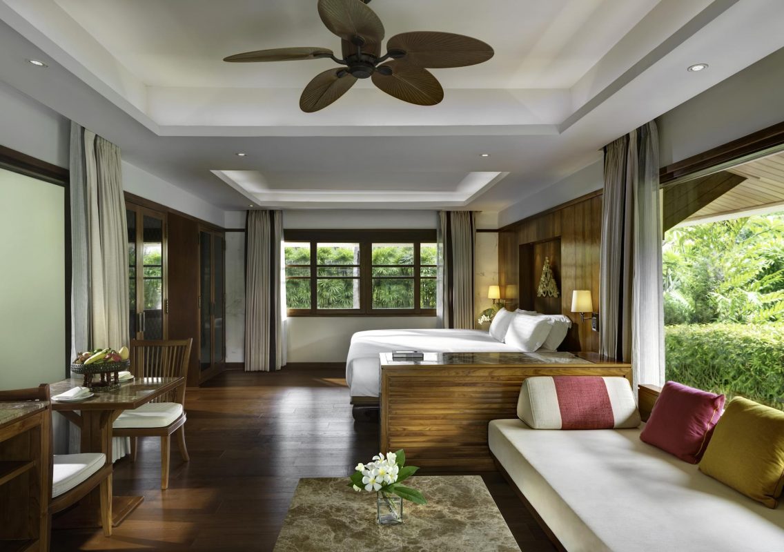 В дизайне просторных комфортабельных номерах люкс и виллах преобладают элегантные лаконичные интерьеры в современном мягком тайском стиле, с отделкой и полами из тикового дерева, изящной мебелью, оригинальными украшениями, с балконов и террас номеров открывается прекрасный вид на море и сады.
