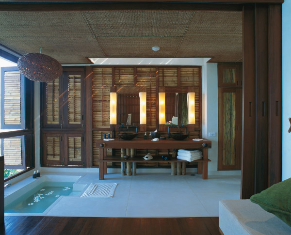 Pool Villa Suite— 300 м2. Состоит из спальни, гардеробной, гостиной, обеденной зоны, 2 ванных комнат, ванны открытого плана, душа на открытом воздухе, меблированной террасы с бассейном (3 х 5 м) и зоной отдыха.