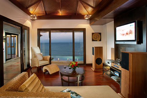 Seaview Villa (50 кв.м): кровать king-size или две кровати twin, гостиная зона с диваном, ванная комната с ванной, душевой кабиной и двумя раковинами, терраса.