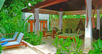 Jacuzzi Villa (120 кв.м) — состоит из спальни, гостиной, ванной комнаты, гардеробных, террасы с джакузи, окруженной садом. Для гостей этого номера – бесплатный мини-бар с напитками, послеобеденный чай в коктейль - баре.