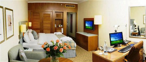 В каждом номере: кондиционер, телевизор LCD со спутниковыми каналами, телефон с голосовой почтой, доступ в Интернет, ISDN line (по запросу), письменный стол, сейф, мини-бар, набор для приготовления чая и кофе, фен.