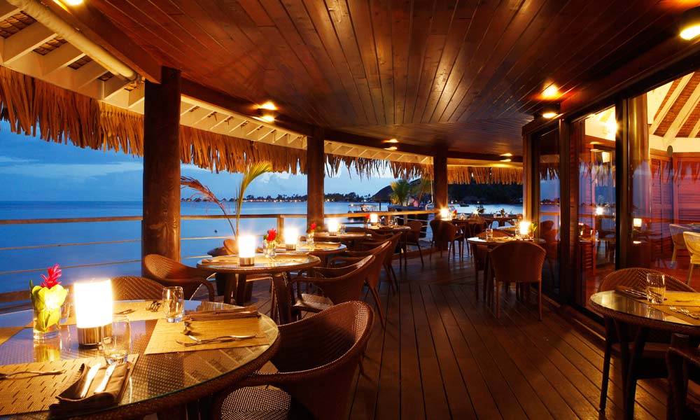 В часы обеда и ужина блюда в ресторане готовятся на открытой кухне. С террасы ресторана открывается вид на лагуну. Здесь подают блюда местной и мировой кухни, проводят тематические вечера и готовят в традиционной таитянской печи В пляжном баре у бассейна подают закуски во второй половине дня и коктейли по вечерам. В некоторые вечера для гостей устраивают живую развлекательную программу.