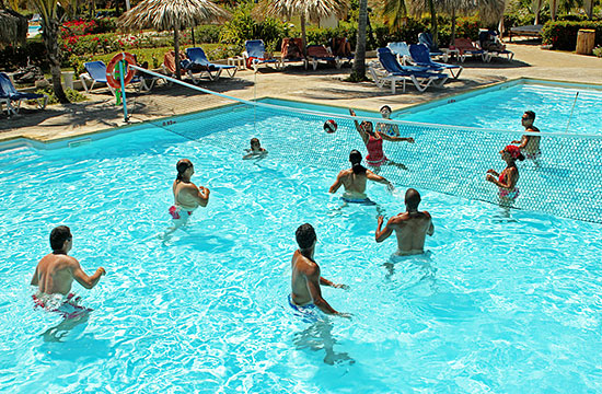 Трехразовое питание в ресторанах и барах, местные и зарубежные напитки в барах и вино к обеду и ужину в ресторанах, немоторизованные виды водного спорта и наземный спорт: катание на велосипедах, подводное плавание, катамаран, швертбот, педальные лодки, виндсерфинг, каяк, плавание с трубкой и маской, уроки аэробики, испанского языка, кубинских танцев, детские развлекательные программы, бассейн, 2 теннисных корта