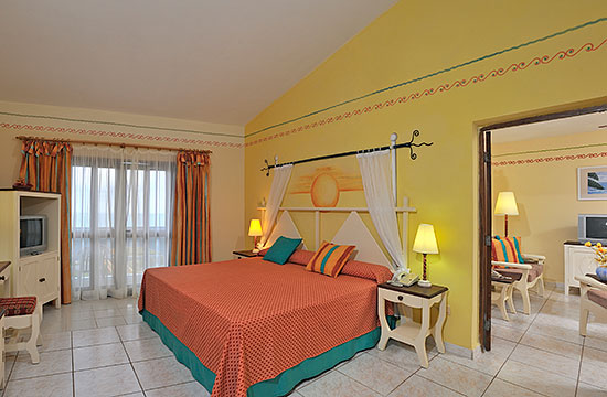 При пребывании не менее 7 дней: ужин с лангустами (1 на протяжении пребывания), приватный чек-ин, приветственный коктейль, мини-бар с ежедневным пополнением газированных напитков, пива и воды. <span style="color: #7b3000;"><b>STANDARD SEA VIEW: 30 м²</b></span>. Имеют террасу или балкон с гарантированным видом на море. Эти стандартные номера очень уютные, просторные и красивые, имеют гостиную. <br>