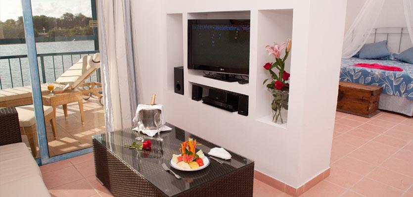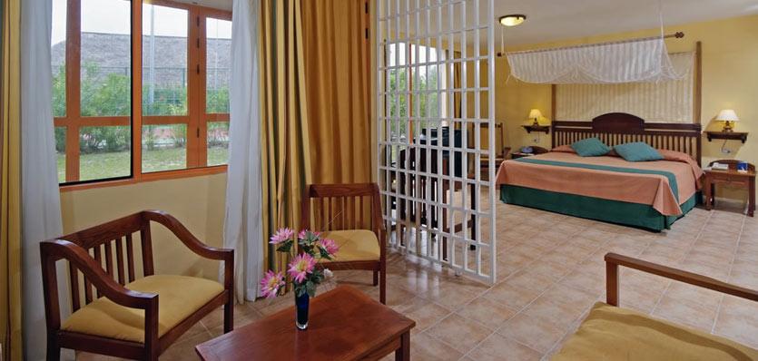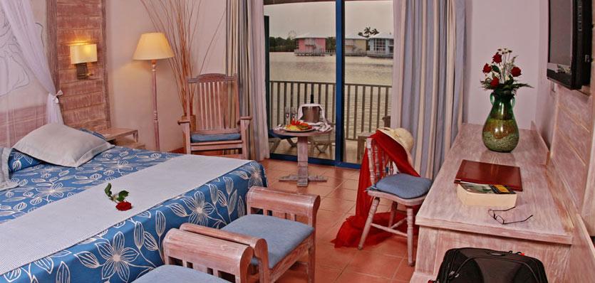 Расположенные на сваях над лагуной, с красивым видом, номера имеют разделенное на две зоны пространством, изысканно оформленным красивыми элементами, сделанные кубинскими мастерами и оснащены креслами-качалками. Предлагаются эксклюзивные услуги Luxury. <br>
