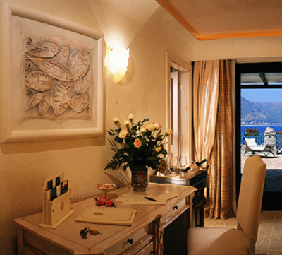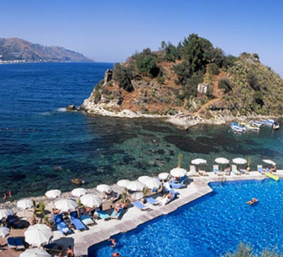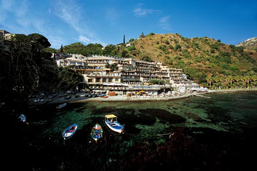 Отель расположен на восточном побережье Сицилии, в окрестностях города Таормина, в 65 км от аэропорта Катания. Белоснежное здание с многочисленными просторными террасами примостилось у самой кромки залива Сирены (Baia delle Sirene) в окружении величественных гор, пышных садов, лесных массивов и искрящихся изумрудных вод безмятежного моря. Гости отеля смогут насладиться удивительным шармом этого места, в полной мере передающего яркие цвета, удивительную атмосферу и ароматы Средиземноморья. Помимо весьма традиционного внешнего вида гостиницы, вызывающего в памяти образ типичной приморской деревушки, удивительной панорамы, открывающейся с террас каждого номера, вас непременно тронет знаменитое сицилийское гостеприимство, поразят кулинарные шедевры местных поваров и традиционный облик интерьеров. Здесь продумана каждая деталь: огромный аквариум с тропическими рыбами, установленный в лобби, выполненные из местного камня стены холлов в виде живописных скал, оригинальные светильники на потолках, создающие мягкое приглушенное освещение, — гости словно погружаются в загадочный и приветливый мир средиземноморской элегантности и изящества.