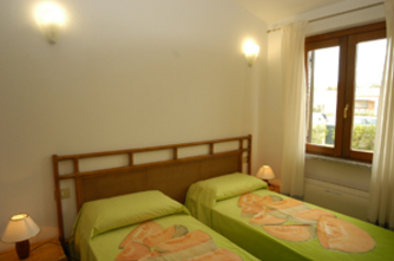Отдельная вилла (от 6 до 8 человек): площадь 120 кв.м. Состоит из: спальня с двухспальной кроватью, детская комната с двумя кроватями (редко двухэтажная кровать с возможностью поставить допкровать для третьего ребёнка), гостиная с диванами с телевизионном углом, кухня (оборудованная плитой, посудомоечной машиной, микроволновой печью и всем необходимым для отличного отдыха), две ванные комнаты, стиральная машина, лоджия, оборудованная для еды на открытом воздухе, барбекю, садик с душем, место для машины. По запросу можно поставить 2 дополнительных кровати за доплату 75 евро в неделю с каждого.