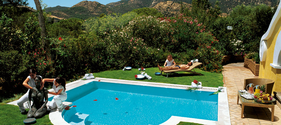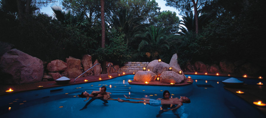 Отель находится в одном из девственных уголков Сардинии и считается одним из самых красивых на острове. Курорт “ForteVillage resort", защищенный от северных ветров горной цепью, имеет особый субтропический микроклимат, где даже море на два градуса теплее, чем в других частях острова, а 300 солнечных дней в году обеспечивают курортный сезон с мая по ноябрь.