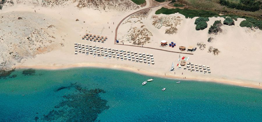 Chia Laguna Resort – одно из самых красивых мест Южной Сардинии. Своим гостям он предлагает эксклюзивный и незабываемый отдых в трёх отелях или частных виллах. Комплекс курорта расположен рядом с одним из самых красивых пляжей на западном побережье Сардинии. Пляж покрыт тонким золотистым песком, окружен дюнами, созданными ветром и омывается прозрачными лазурными водами теплого моря.