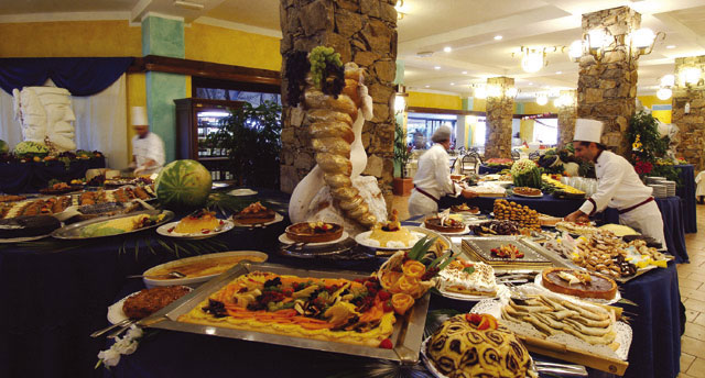 Bimbi Restaurant. Создан для самых маленьких гостей курорта. Это новый ресторан, в котором дети могут пообедать и поужинать в веселой и непринужденной обстановке: буфет, создан специально для них. Все блюда готовятся из экологически чистых продуктов и гарантируют здоровое и разнообразное питание каждый день. Le Dune. Ресторан расположен за пляжем Кампана, в окружении живописного пейзажа бухты Кии. Является идеальным местом для обеда: рыба, приготовленная на гриле, является одним из его фирменных блюд. Предлагаются также первые блюда, приготовленные из свежайших ингредиентов, пиццы, приготовленные в печи на дровах. В ресторане есть лоунж-бар у берега моря.Luna Restaurnt. Это ресторан для гурманов предлагает своим посетителям блюда средиземноморской кухни вместе с отличными винами и ликерами. Интерьер выполнен в современном стиле. В Луна ресторане имеется пиццерия.Panino Giusto. Здесь можно попробовать знаменитые итальянские бутерброды, которые, благодаря своим исключительным вкусовым качествам, покорили весь мир. Среди наиболее интересных услуг, оказываемых гостям, является возможность заказать еду из ресторана прямо с пляжа. Steak House на Piazza degli Ulivi. Этот ресторан для почитателей мясных блюд: замечательный ассортимент мяса, запечённого на решётке с древесными углями. Pool Restaurant. Новый ресторан отличают изысканный дизайн, оживленная атмосфера, меню à la carte с лучшими блюдами сардинской кухни. Приглушенный мягкий свет, элегантная меблировка, безупречное обслуживание удовлетворят даже самых требовательных посетителей. Каждый вечер - это возможность познакомиться с блюдами традиционной кухни этого замечательного острова, отличающейся простотой и отменным вкусом. Ресторан расположен у бассейна.