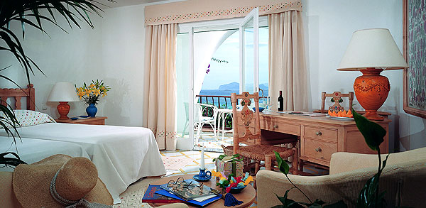 Каждый номер оборудован ванной комнатой с феном, душем и телефоном, спутниковым телевидением, доступом в Интернет, мини-баром, кондиционером, DVD плеером. Также в каждом номере есть терраса с видом на море или сад.