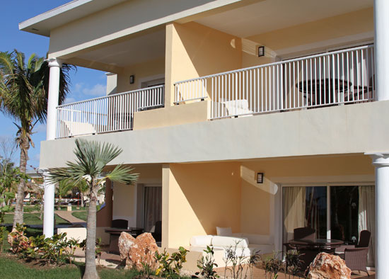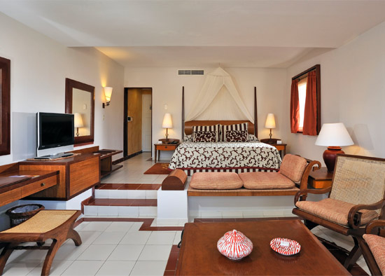 <span style="color: #a1410d;"><b><span style="color: #7b3000;">Suite</span></b></span>: 80 м<sup>2</sup>. Расположен на 1 линии у пляжа, на верхнем этаже 2-этажных бунгало, состоит из спальни с кроватью king-size или двумя кроватями twin, гостиной с обеденной зоной, 2 ванных комнат, 2 террас с видом на море. Максимальное размещение – 3 взрослых или 2 взрослых + 2 ребенка до 12 лет. <br>