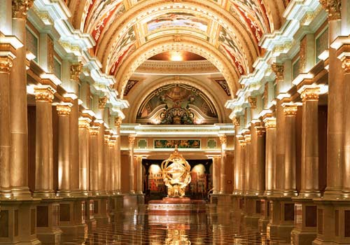 Отель-казино Venetian, расположенный на знаменитом бульваре Лас-Вегас Стрип, в самом центре главной зоны развлечений города, в нескольких минутах от многочисленных казино и ночных клубов, представляет собой миниатюрное отражение Венеции. Территорию отеля украшают уменьшенные копии знаменитых достопримечательностей итальянского города - Дворца дожей, Большого канала, собора св. Марка и других: особая итальянская романтика, образцы утонченной архитектуры, незабываемые поездки на гондолах и атмосфера нескончаемого карнавала покоряют воображение гостей отеля. Этот необычный «город в городе» будто бы объединяет две столицы развлечений Старого и Нового Света, предлагая самые невероятные возможности для любителей азартных игр со всего мира. Помимо огромного казино, 4027 номеров категории Suite, расположенных в 2 башнях отеля, комплекс включает 17 удивительных ресторанов, 4 бара, а также спа-центр Canyon Ranch SpaClub, предлагающий тренажерный зал со стеной для скалолазания, паровую баню, сауну, джакузи, парикмахерскую и спа-бутик Canyon Ranch Living Essentials.