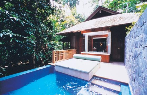 The Datai - расположен на северо-западе острова, высоко над уединенной бухтой, отель предлагает потрясающий вид на белоснежный песчаный пляж и лазурные море. Интерьеры отеля – тонкий синтез исконных восточных традиций с элементами классического европейского стиля: красивая мебель, изящные акварели, много цветов. Атмосфера уединения и абсолютного спокойствия, присущая этому месту, гармоничное совмещение давних островных традиций и новейших технологий, гастрономические изыски и потрясающее разнообразие гостиничного сервиса делают гостиницу прекрасным местом и для романтических каникул вдвоем, и для отдыха с семьей, и для активных занятий водными видами спорта и эко-туризмом.