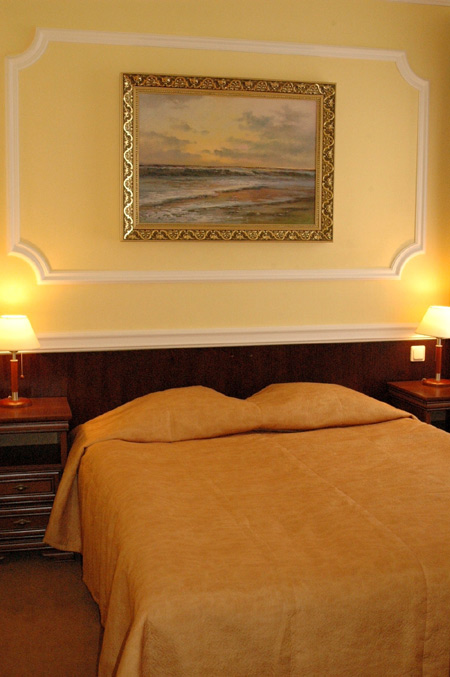 Номер полулюкс в корпусе бизнес класса Однокомнатный номер 32 – 34 м2, две раздельные кровати (возможно, соединить вместе), диван для отдыха, который можно использовать как дополнительную кровать. Номер оборудован ванной комнатой, встроенным шкафом, прессом для брюк, кондиционером воздуха, сателитным и платным телевидением, прямой телефонной линией и минибаром