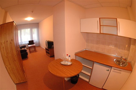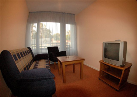 Номер Люкс в корпусе экономического класса Двухкомнатный номер 32 м2, большая общая кровать, диван для отдыха, который можно использовать как дополнительную кровать. Номер оборудован небольшой кухней, ванной комнатой, шкафом, кондиционером воздуха, сателитным и платным телевидением, прямой телефонной линией.