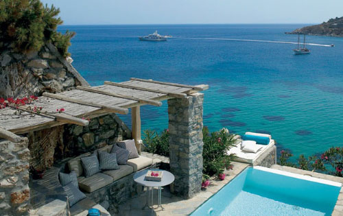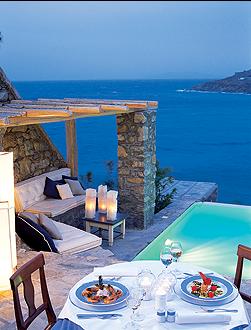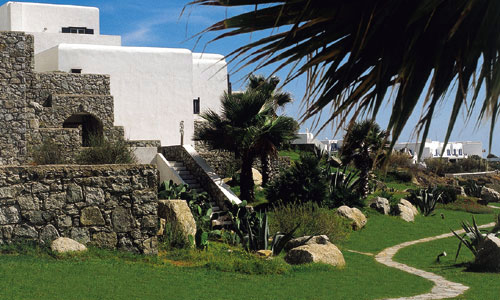 Отель расположен на побережье греческого острова Миконос, входящего в архипелаг островов Киклады, на берегу залива Псароу (Psarou), в 4 км от города Миконос и международного аэропорта.
