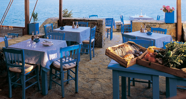Ресторан–таверна Blue Door находится у самой воды и предлагает традиционные блюда греческой кухни и деликатесы из свежайших морепродуктов.