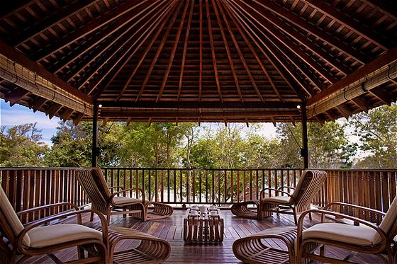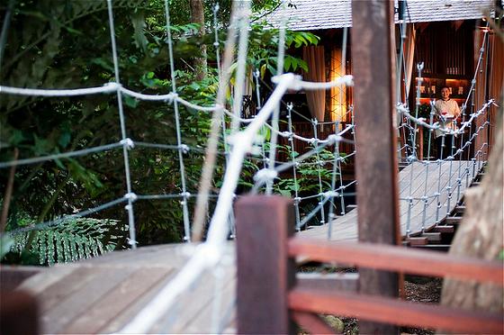 Treehouse Villa: 90 м2; построена на сваях, среди деревьев; состоит из спальни с кроватью king size, гостиной, ванной комнаты, террасы с открытой душевой, частным бассейном или открытой джакузи и видом на джунгли.